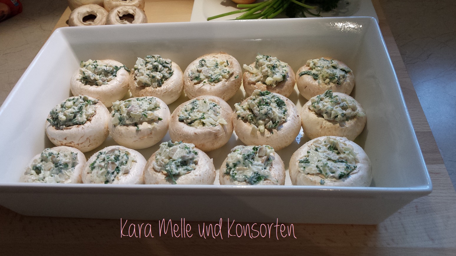 Champignons, Champignons überbacken, Gefüllte Champignongs, gut vorzubereiten, leckere Champignons, schnelles Gericht