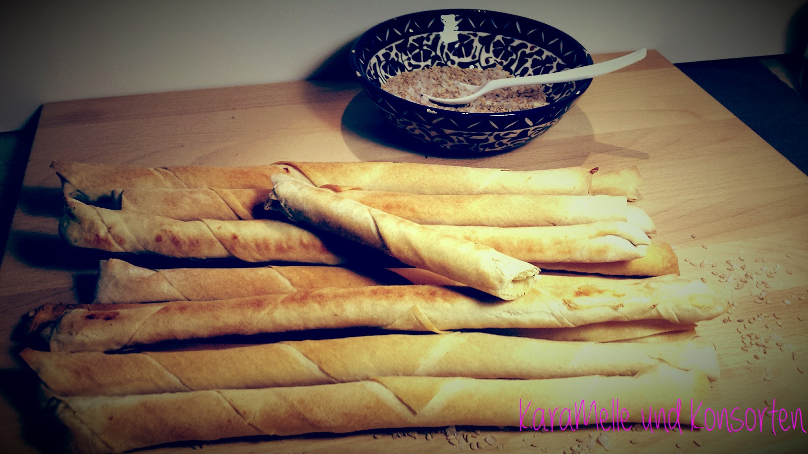 Filoteig, Knusperstangen, Yufkateig, Ziegenkäse, Ziegenkäse-Knusperstangen