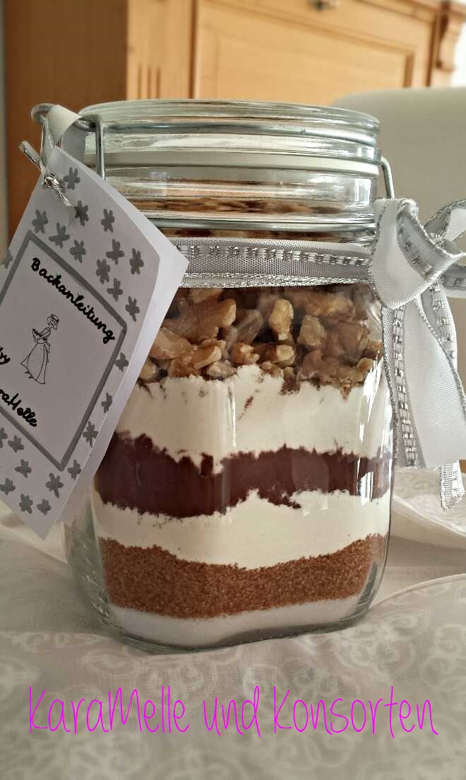 Backmischung im Glas, Brownies, Brownies-Backmischung, Geschenk, Kuchen aus dem Glas, Kuchenglas