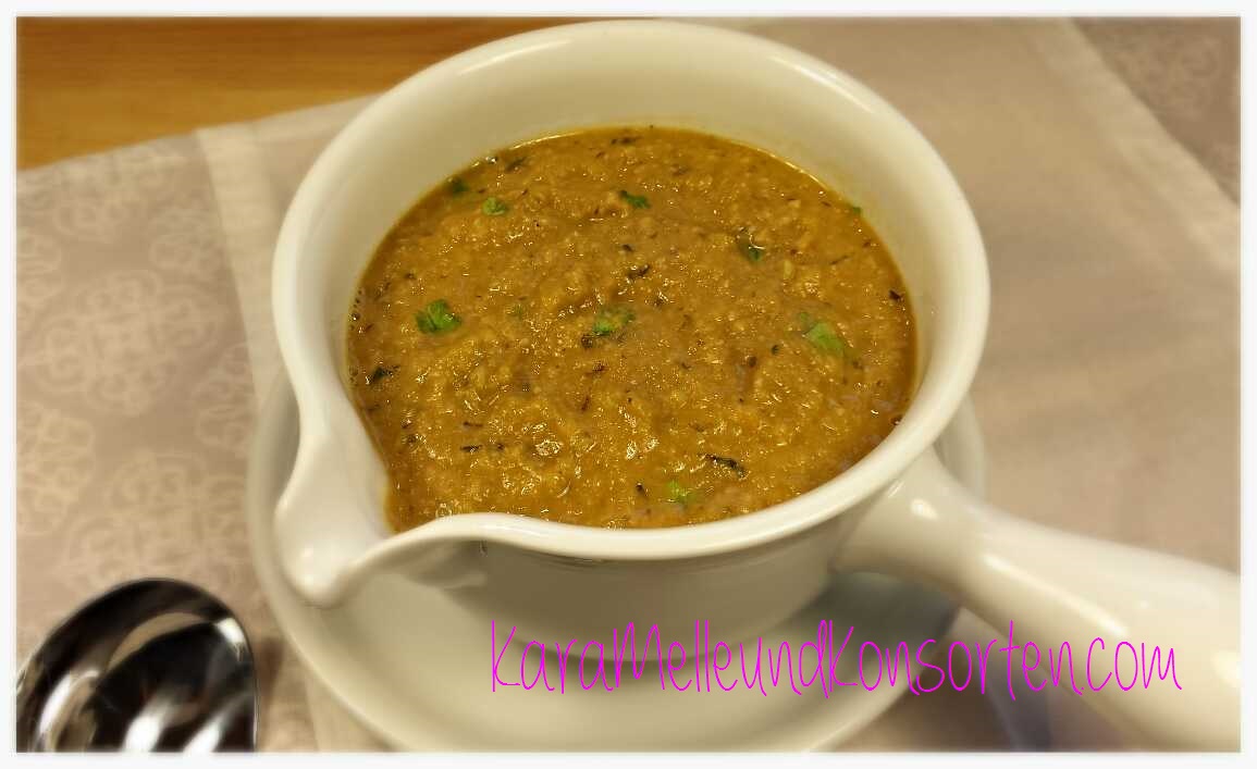 ⇒⇒ Das Ursprungsrezept stammt aus „Saucen, Leicht & Lecker“, Karl Müller Verlag, und wurde von mir abgewandelt.