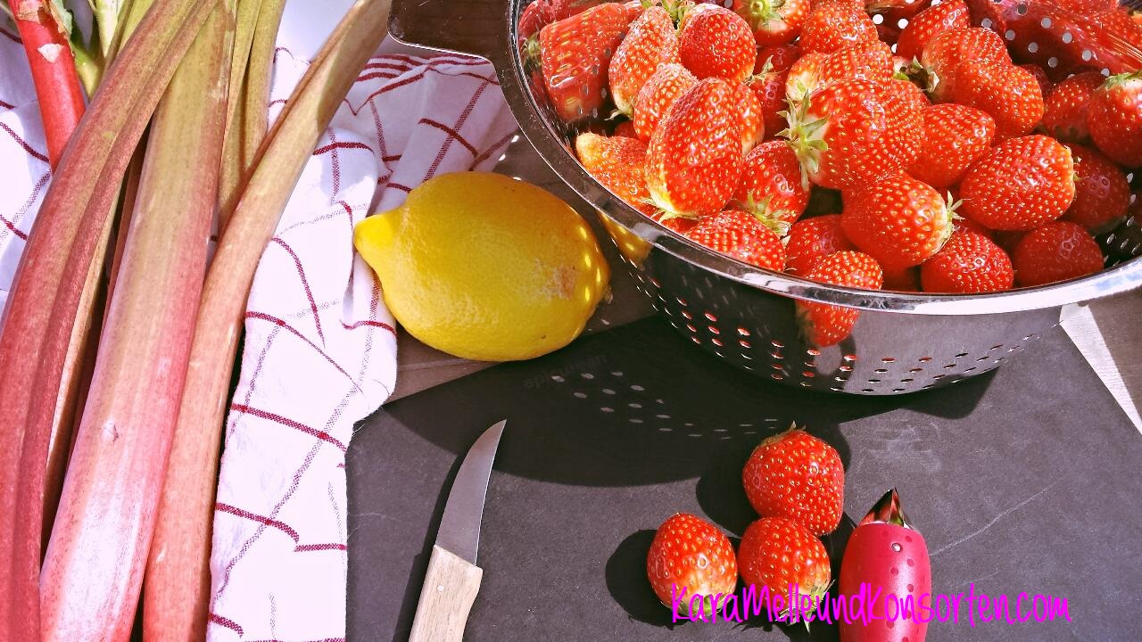 Hier ein Rezept für eine sehr leckere Erdbeer-Rhabarber-Konfitüre! Bei uns zu Hause ist sie im Moment gerade der Renner! Mein Sohn will sie im Moment dauernd an Freunde oder Familienmitglieder verschenken, um ein bisschen mit seiner Mutter anzugeben (oder mit der Konfitüre??)!! Egal weshalb, sie schmeckt einfach lecker fruchtig-süß und ich muss ein paar Gläser für uns retten oder einfach noch mal neue Konfitüre kochen! ♥