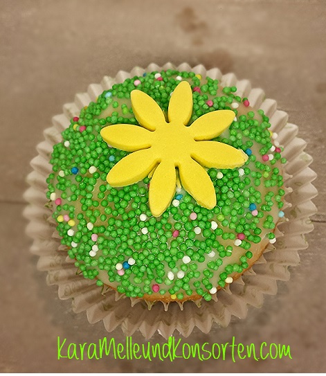 Muffin grün I OKDen Puderzucker mit dem Zitronensaft verrühren. Wenn die Glasur noch zu fest ist vorsichtig mit einem TL etwas Zitronensaft zugeben. Mit die Masse schön geschmeidig ist!Die Muffins damit überziehen. Für weitere Deko eignen sich bunte Streusel und kleine Zucker-oder Fondantblumen, die aber schnell auf dem noch feuchten Guß angebracht werden müssen, damit sie haften bleiben.