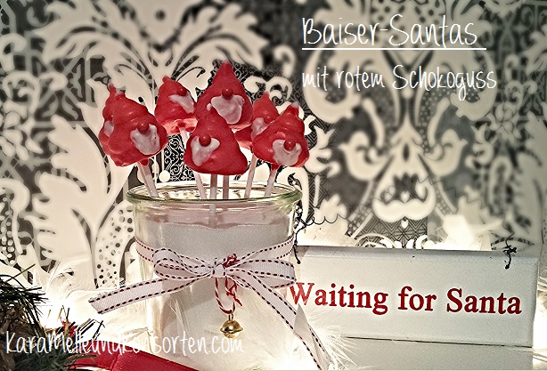 Nachdem die Baiser-Halloween-Geister ein Riesenerfolg waren, habe ich mir überlegt, wie man etwas ähnliches für die Adventszeit machen kann und bin so auf die Idee der, wie ich finde, niedlichen Santas gekommen. Sie sind nicht nur hübsch anzugucken, sondern schmecken auch sehr lecker. Ihr könnt sie nicht nur zwischendurch naschen, sondern sie, wenn ihr sie ganz klein macht, auch gut als Kuchen- oder Muffindekoration verwenden.